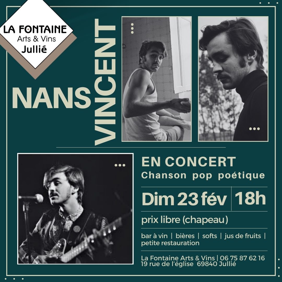 Nous avons le plaisir de vous présenter NANS VINCENT en concert, ce dimanche 23 février à 18h00 au caveau, comme d’habitude à prix libre (chapeau).