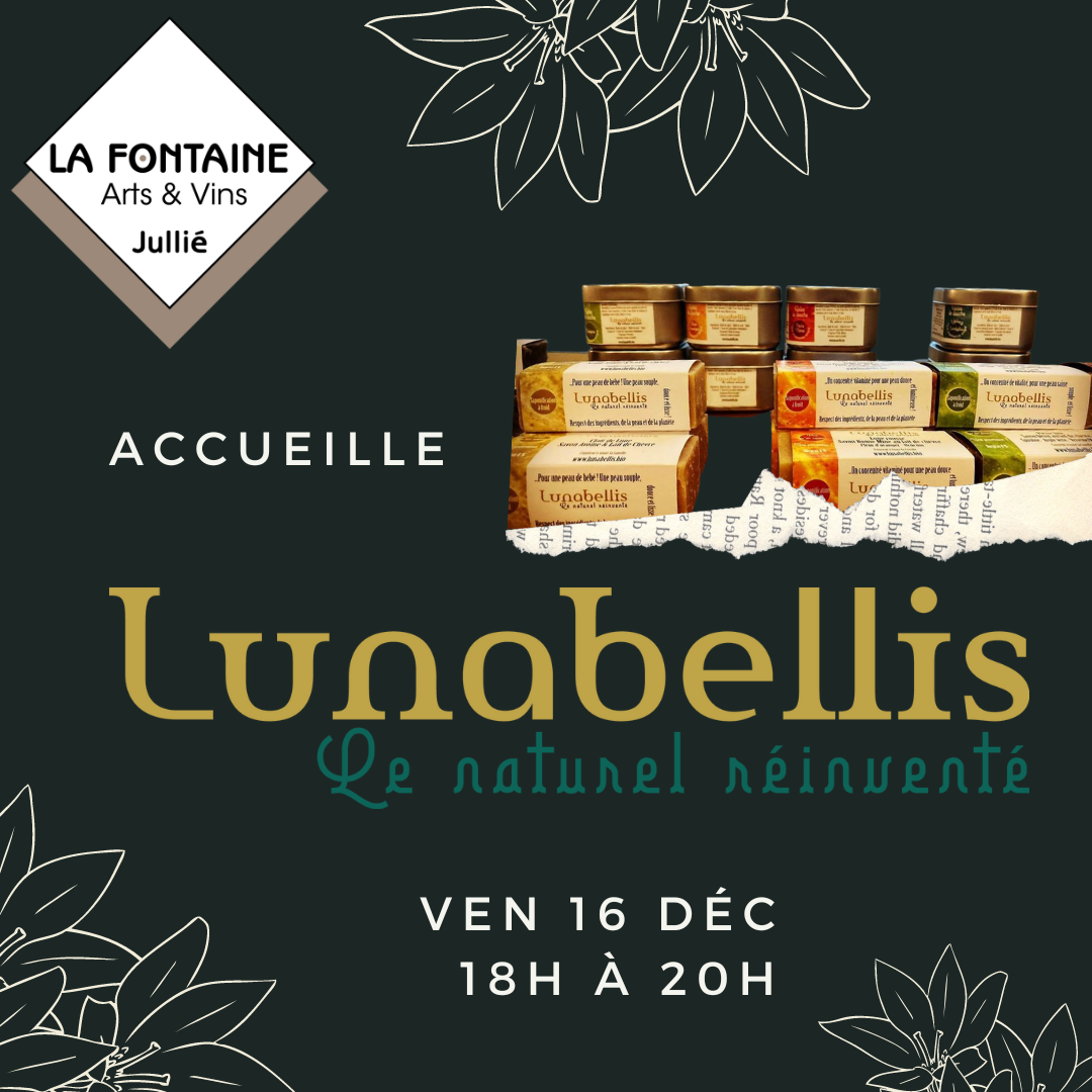 Nous avons le plaisir d’accueillir Christine, créatrice des savons et cosmétiques LUNABELLIS, laquelle viendra présenter ses produits fabriqués localement (Cenves), selon des méthodes traditionnelles et à partir d’ingrédients bios pour l’essentiel, le tout dans des emballages réduits et recyclables…